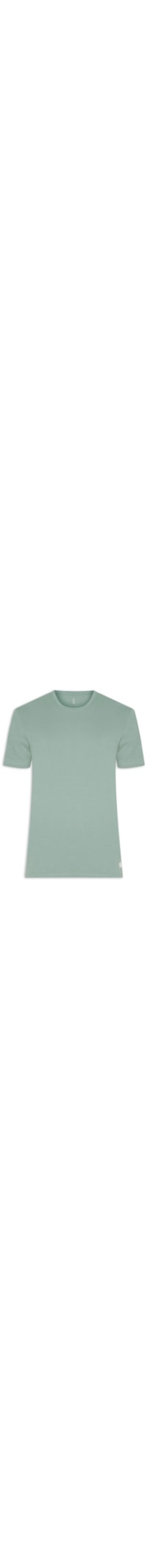 A t-shirt verde é confeccionada em malha de algodão de baixa elasticidade. A peça solta ao corpo, possui gola careca com acabamento canelado, mangas curtas e tag da marca aplicada na parte frontal da barra.