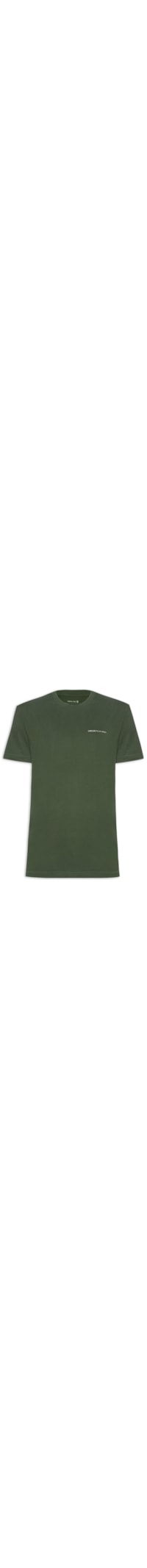 A t-shirt verde é confeccionada em malha de algodão de média elasticidade. A peça solta ao corpo, possui gola careca com acabamento canelado, mangas curtas, nome da marca estampado na altura do tórax em cor contrastante e estampa figurativa de coqueiros em cor contrastante na parte posterior.