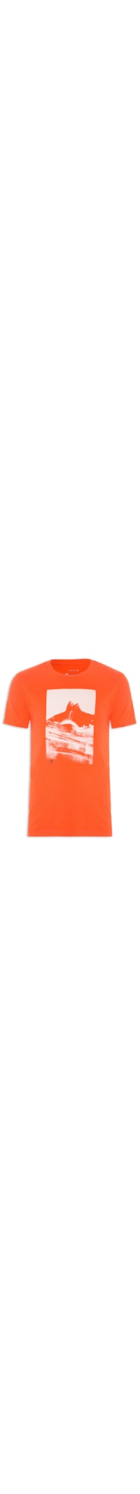 A Camiseta laranja é confeccionada em malha de algodão. A peça possui gola careca, estampa frontal figurativa em silk de cor contrastante, mangas curtas, caimento reto, shape solto e acabamento pespontado.