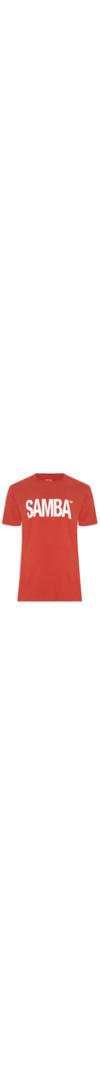 A t-shirt vermelha é confeccionada em malha de algodão com média elasticidade. A peça solta ao corpo possui gola careca canelada, mangas curtas e estampa frontal de escrita com logo da marca aplicada em cores contrastantes na altura do tórax.