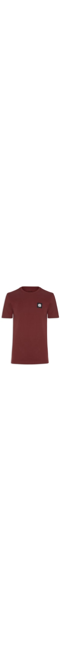 A Camiseta vermelha é confeccionada em malha de algodão com média elasticidade. A peça solta ao corpo possui gola careca com acabamento canelado, mangas curtas e estampa localizada na altura do tórax.