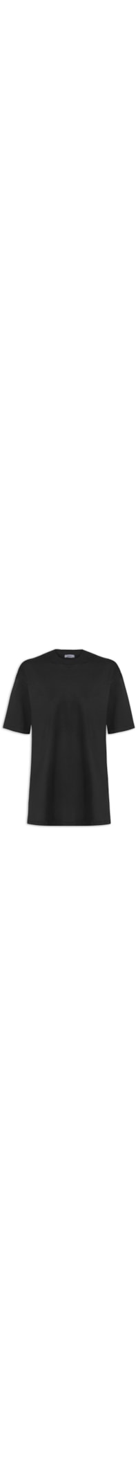 A camiseta preta é confeccionada em malha de algodão com baixa elasticidade. A peça de modelo oversized* solta ao corpo possui decote redondo com acabamento canelado, mangas curtas, ombros estendidos e comprimento alongado.