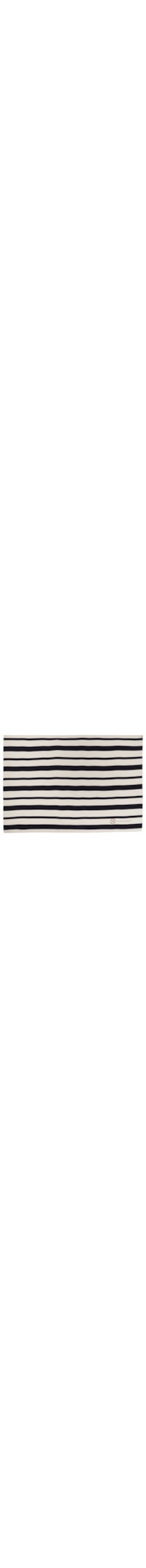 A canga branca é confeccionada em tecido leve. A peça possui tamanho grande, formato retangular e padronagem listrada em cor contrastante.