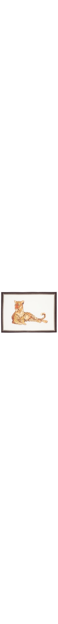A canga branca é confeccionada em tecido leve de baixa elasticidade. A peça possui formato retangular, estampa figurativa de onça na parte frontal em cores contrastantes, barra com estampa animal em cores contrastantes e leve transparência.
