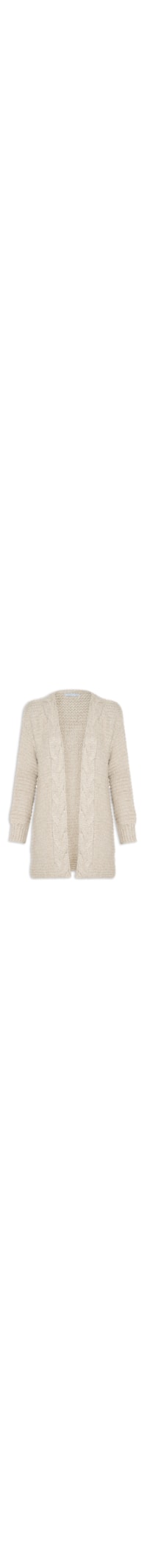 o cardigan Bege é Confeccionado Em Tricot Com Superfície Texturizada E Alta Elasticidade. A Peça Solta Ao Corpo Possui Mangas Longas Modelo Raglan Com Acabamento Canelado E Comprimento Alongado.