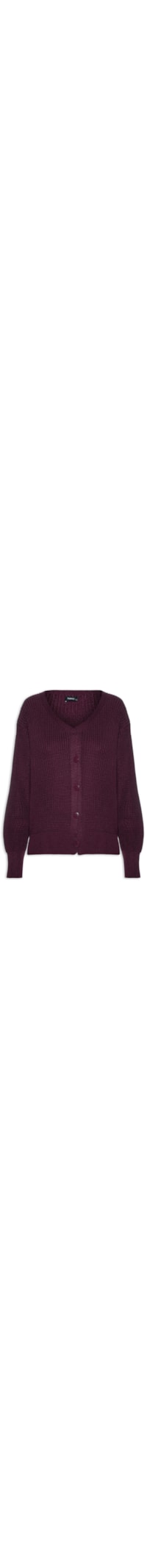 O cardigan vinho é confeccionado em tricot de alta elasticidade. A peça solta ao corpo possui decote V, ombros estendidos, mangas longas, acabamento canelado e fechamento frontal em botões.