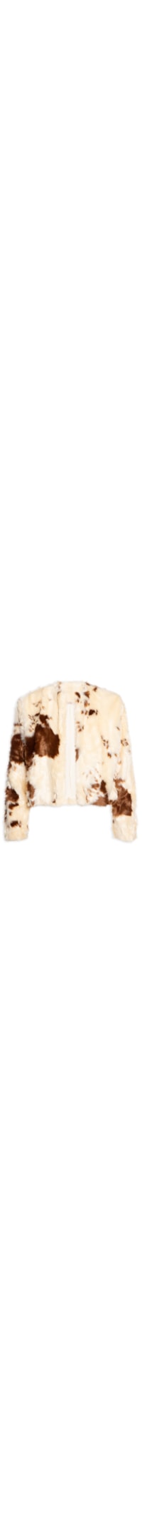 O casaco bege é confeccionado em pelo sintético sem elasticidade. A peça de modelagem reta apresenta gola redonda, mangas longas, superfície bicolor com padrão irregular, forro interno liso e sem fechamento.