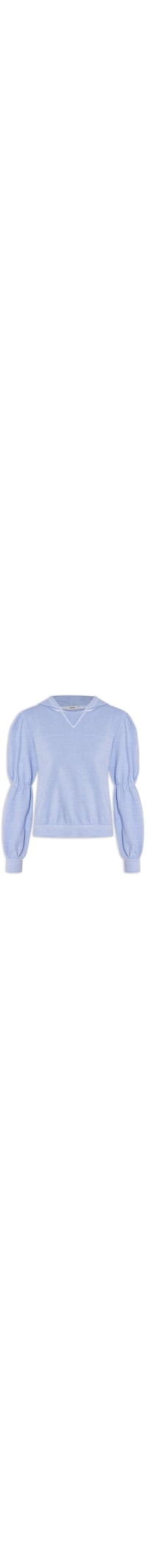 O casaco lilás é confeccionado em moletom. A peça possui capuz aplicado na parte posterior, mangas longas bufantes com elástico embutido, ombros estendidos, recorte frontal, shape solto, caimento reto e acabamento pespontado.