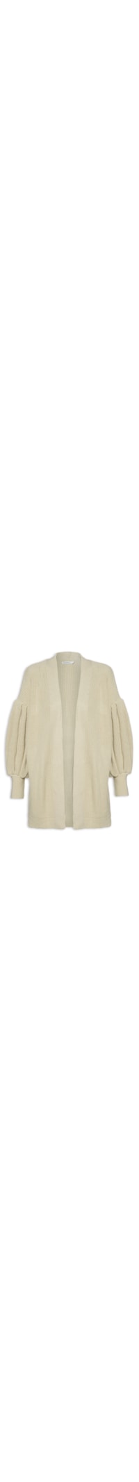 O casaco Bege é Confeccionado Em tricot De Alta Elasticidade. A Peça Solta Ao Corpo Possui Ombros Estendidos, Mangas Longas, Tag Metalizada Da Marca Aplicada Na Parte Posterior, Comprimento Alongado E Sem Fechamento.