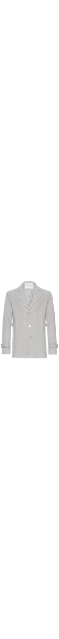 O casaco cinza é confeccionado em tecido encorpado sem elasticidade. A peça solta ao corpo possui lapela maxi chanfrada, mangas longas, bolsos frontais decorativos, forro, comprimento alongado e fechamento frontal por botões.