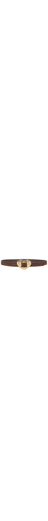 O cinto marrom é produzido em couro misto. A peça possui espessura fina, 7 perfuros, nome da marca gravado na parte externa e fechamento por fivela em formato de coração.