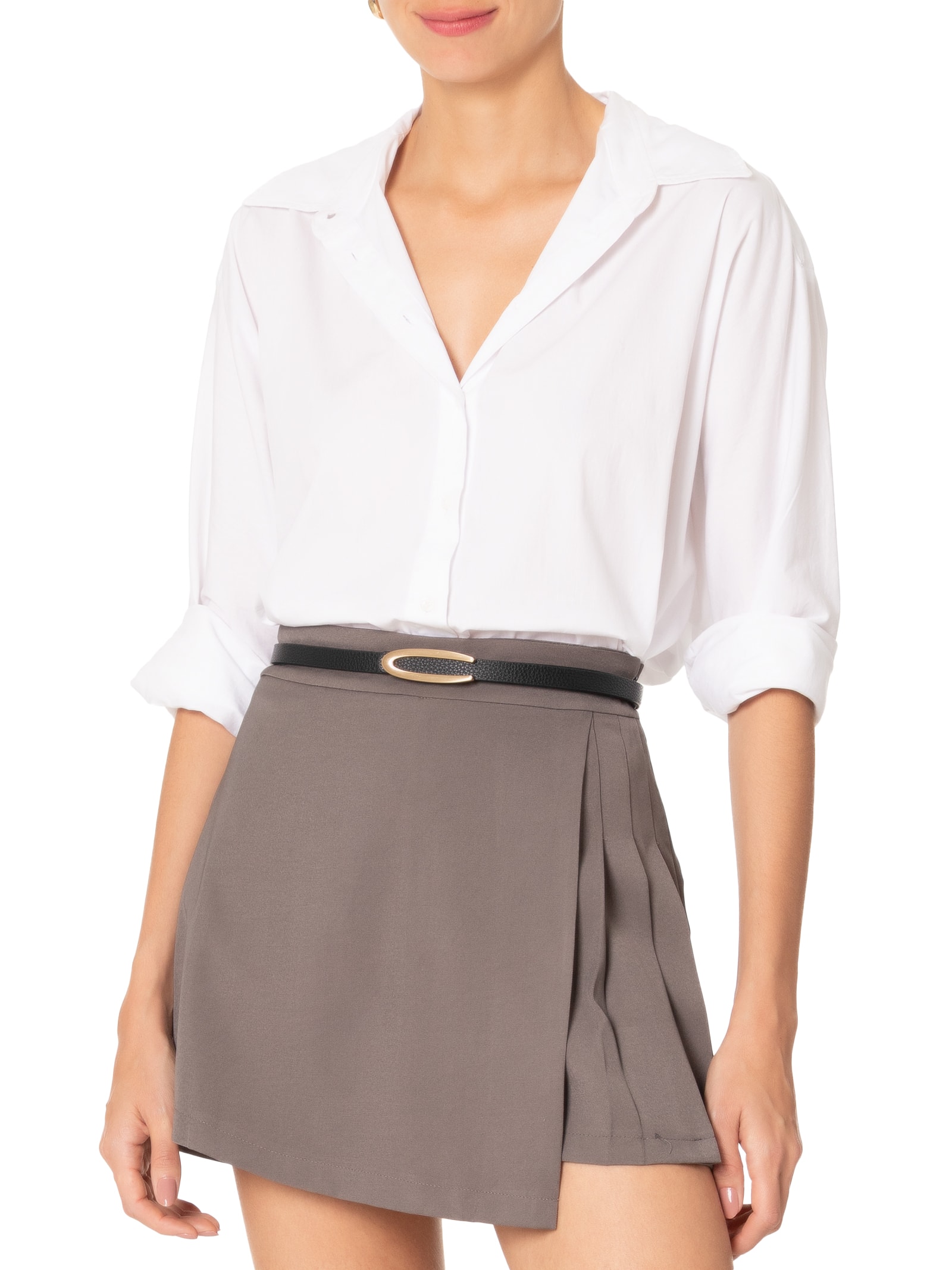 O cinto com fivela arredondada da Market 33 traz um toque refinado ao visual. Combine com camisa branca, short saia de alfaiataria e brincos dourados para um look minimalista e elegante, perfeito para o dia a dia com estilo contemporâneo.