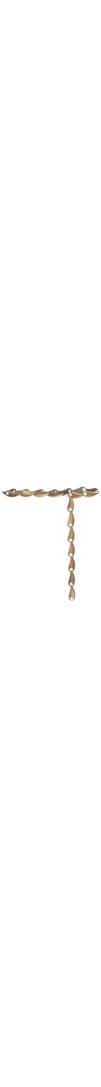 O cinto dourado é produzido em metal. A peça possui espessura fina, corrente metalizada com formato figurativo e fechamento por fecho de encaixe.