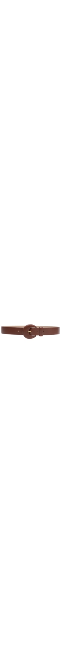 O cinto marrom é produzido em couro com superfície texturizada. A peça de espessura média, possui passante fixo de couro, perfuros para regulagem e fechamento frontal por fivela arredondada encapada.