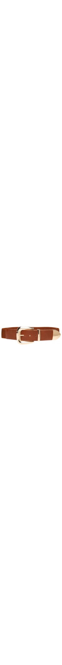 O cinto marrom é produzido em couro. A peça espessura grossa, 3 perfuros para ajuste, elástico aplicado na parte posterior, passante fixo metálico, detalhe metálico na ponta e fechamento frontal por fivela metálica com formato quadrado de laterais arredondadas e regulável.