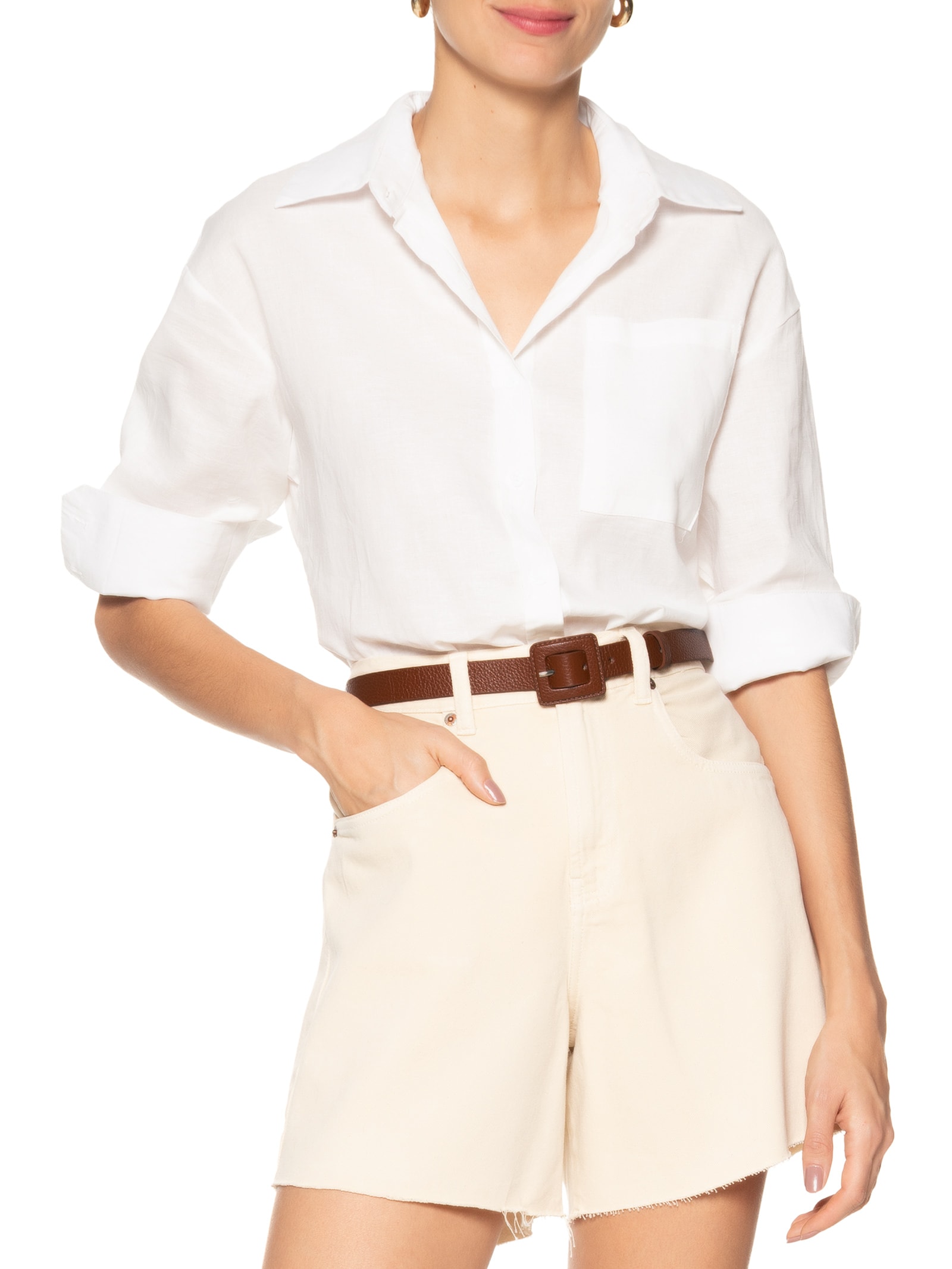 O cinto marrom da Arezzo é o toque de sofisticação que faltava nas produções neutras e minimalistas, ele é perfeito para valorizar peças de alfaiataria ou jeans de cintura alta. Combine o seu com uma camisa lisa, short, brincos de modelo argola e sandálias de salto para um visual fresh e elegante, ideal para dias casuais com estilo.