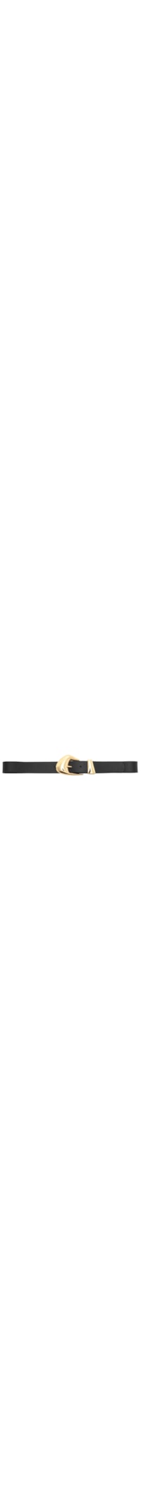 O cinto preto é produzido em couro. A peça possui espessura média, passante fixo metalizado e fechamento frontal por fivela metálica regulável em formato orgânico.