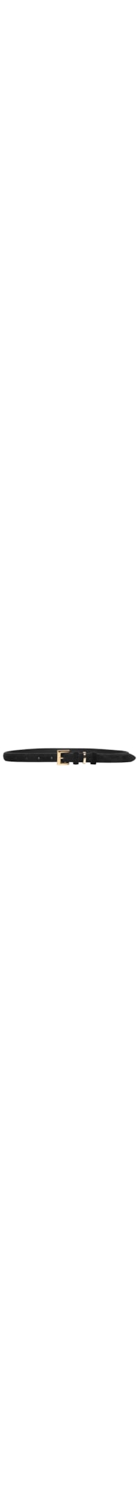 O cinto preto é produzido em camurça. A peça possui espessura fina, passantes fixos sendo um passante metálico, perfuros e fechamento frontal por fivela metálica quadrada.