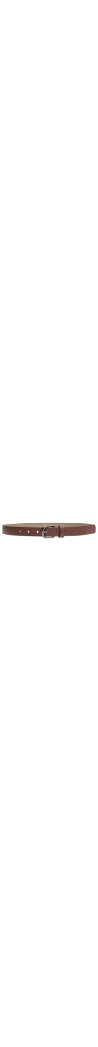 O cinto marrom é produzido em couro. A peça possui espessura média, 7 perfuros, passante fixo e fechamento frontal por fivela metálica regulável.