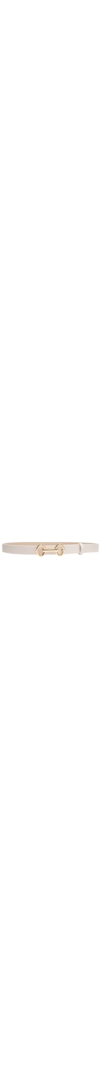O cinto off white é produzido em couro com superfície texturizada. A peça de espessura média, possui passante solto, perfuros para regulagem e fechamento por encaixe em bridão metálico.