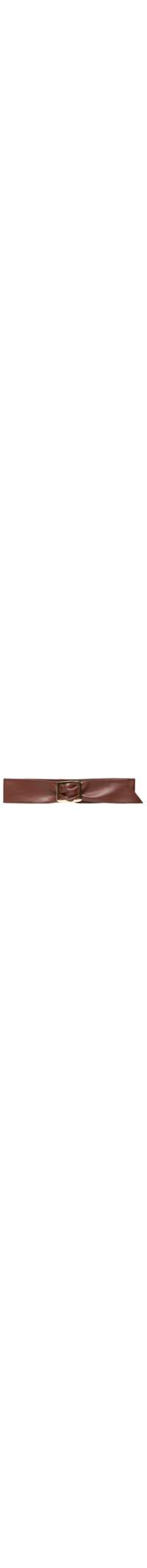 O cinto marrom é produzido em couro. A peça possui espessura grossa, detalhe franzido na parte frontal e fechamento por encaixe em fivela metalizada em formato retangular.