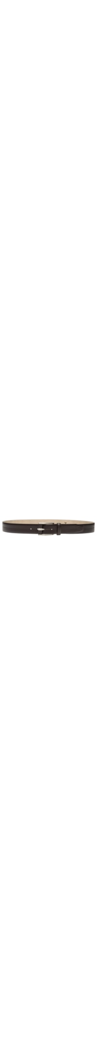O cinto marrom é produzido em couro. A peça possui espessura média, recorte central, passante fixo, logo da marca em relevo aplicado na ponteira, cinco perfuros e fivela quadrada em metal.