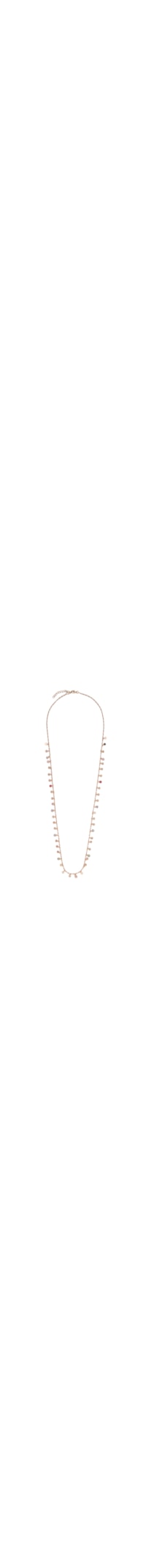 O colar dourado é produzido em metal com banho de ouro 18k. A peça possui espessura fina, recorte de mini elos entrelaçados, aplicações de mini medalhas e pedrarias em cores contrastantes, comprimento alongado, extensor na parte posterior, acabamento polido e fechamento posterior por gancho lagosta.