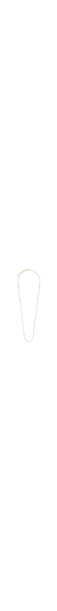 O colar dourado é produzido por metal banhado a ouro 18k. A peça possui espessura fina, aplicações de quadrados pequenos, extensor em corrente elos, comprimento alongado, acabamento polido e fechamento posterior por fecho lagosta.