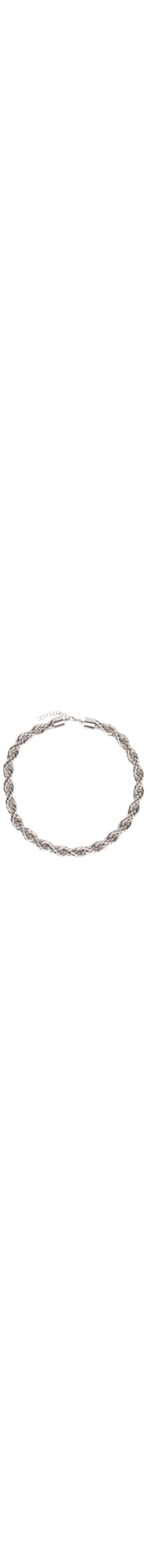 O colar prateado é produzido em metal. A peça possui espessura média, efeito trançado e fechamento posterior por fecho lagosta com corrente extensora.