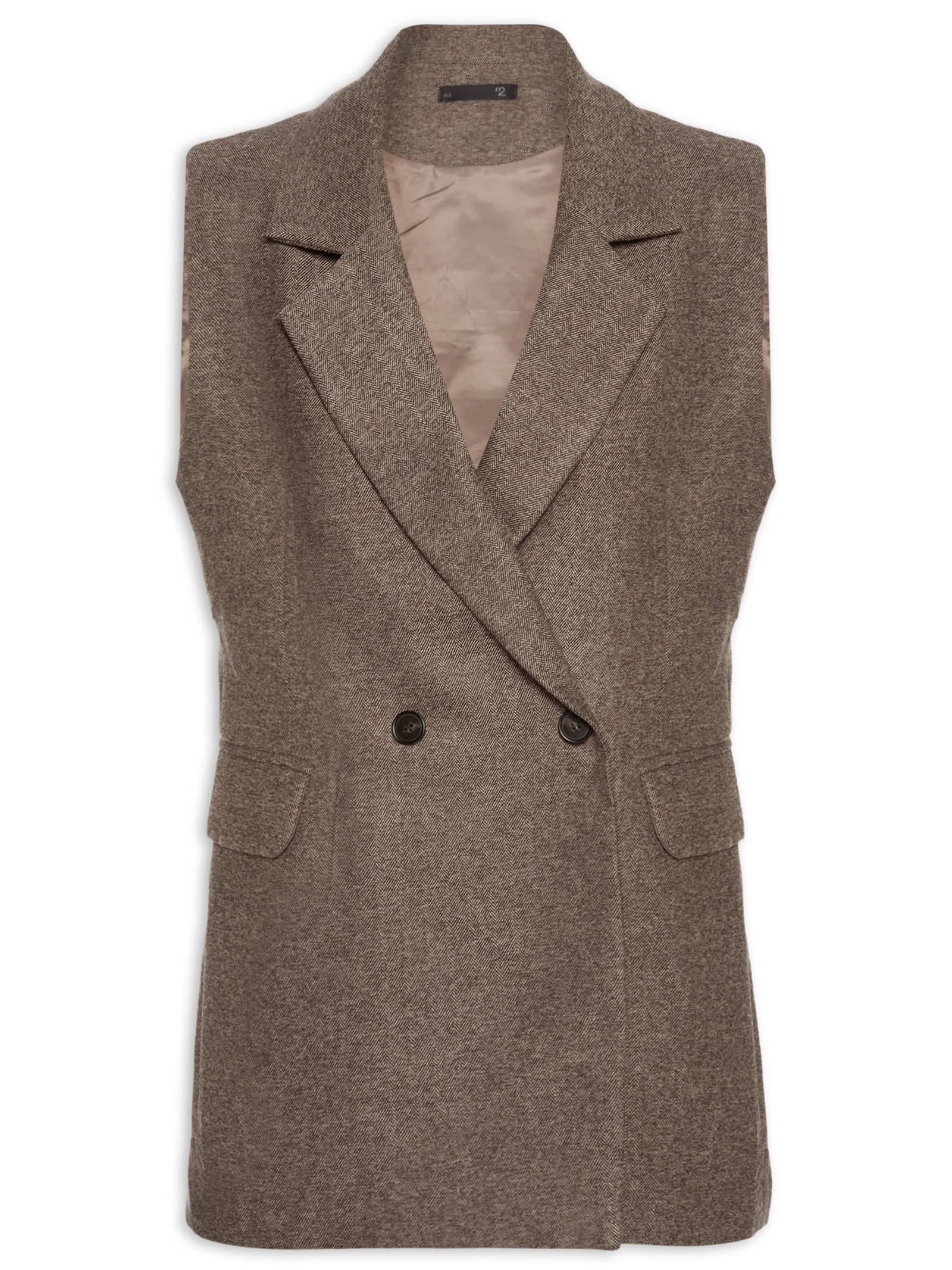 O colete além de alongar a silhueta com suas linhas verticais, traz seriedade e um toque classy para uma produção moderna. Combine esse de '2Essential com uma calça do mesmo tecido como conjunto, bolsa marrom, brincos metalizados e um scarpin para finalizar!