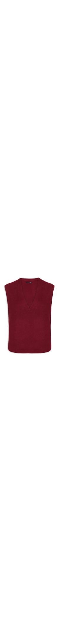 O colete vinho é confeccionado em tricot com superfície texturizada e alta elasticidade. A peça solta ao corpo possui decote V profundo, alças largas, cavas estendidas e barra arredondada.