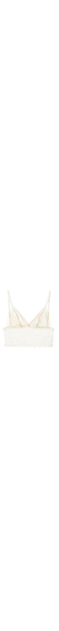 O corpete off white é confeccionado em renda. A peça possui decote V, cavas regulares, alças finas com regulagem, tag da marca aplicada em metal na parte posterior, forro na cor bege em tule na parte frontal, comprimento cropped, shape justo, caimento reto e acabamento pespontado.