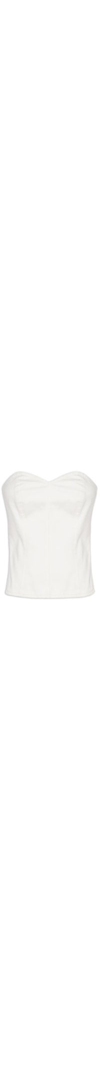 O corselet off white é confeccionado em sarja sem elasticidade. A peça modelo tomara que caia justa ao corpo possui decote coração, recortes frontais e posteriores e fechamento posterior por botão de pressão.