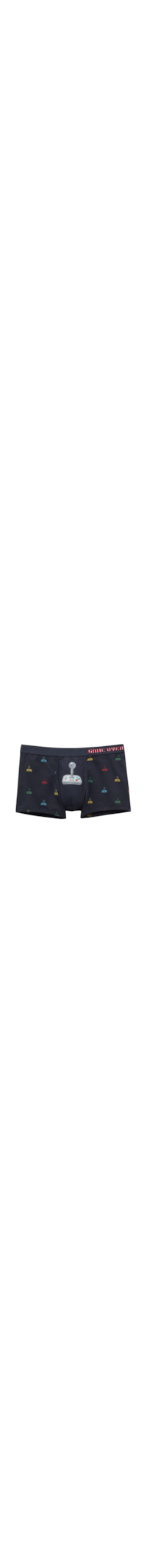Cueca boxer em algodão Supima macio e levemente elástico, com estampa integral de joystick e detalhe divertido na parte frontal. Possui elástico visível com a inscrição “Game Over”.