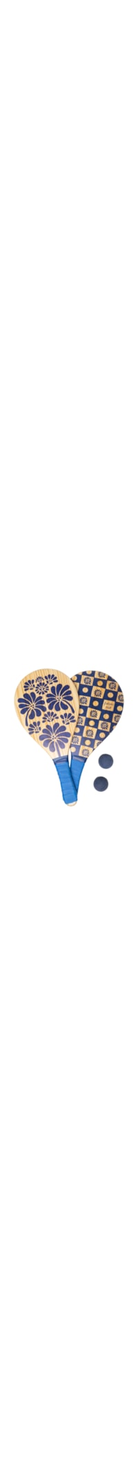 O frescobol azul é produzido em madeira. As peças possuem estampas em tons contrastantes e detalhes nas extremidades em borracha. Acompanha uma bola de borracha.