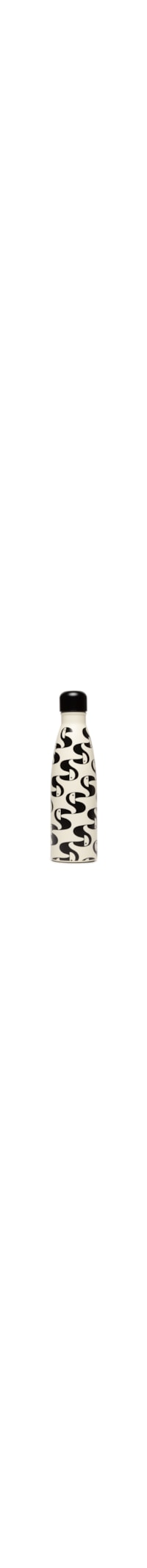 A garrafa branca é produzida em aço inoxidável. A peça possui formato cilíndrico, tamanho grande, estampa figurativa de tucano em cor contrastante, suporte inferior emborrachado e fechamento superior por tampa hermética.