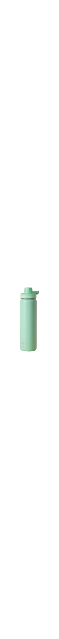 A garrafa verde é produzida em aço inox. A peça possui formato cilíndrico, tamanho médio, paredes duplas com vácuo, nome da marca aplicado na parte frontal, alça rígida e fechamento por tampa hermética de rosca com bico de rosca hermético aplicado.