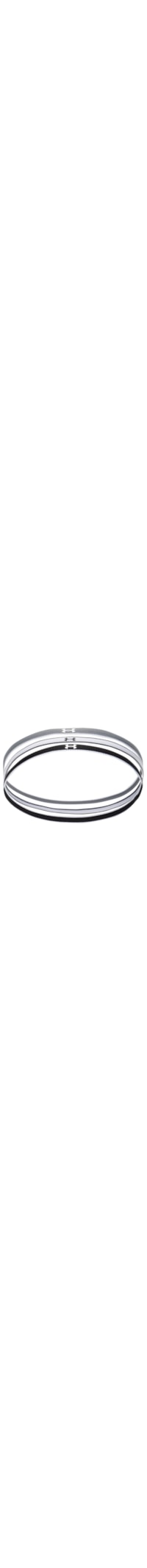 O conjunto de headbands, nas cores preto, cinza e branco, é produzido em elástico. As peças possuem detalhe da marca e parte interna em silicone. O kit é composto por 6 faixas de cabelo sendo: duas pretas, duas brancas e duas cinzas.