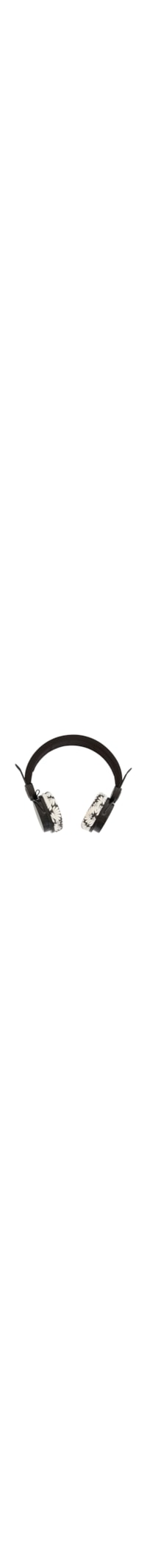 O headphone preto é produzido em plástico resistente. A peça possui arco com superfície em mesh acolchoado, fones arredondados com capa protetora em estampa floral na cor branca e ajuste de volume nas laterais.