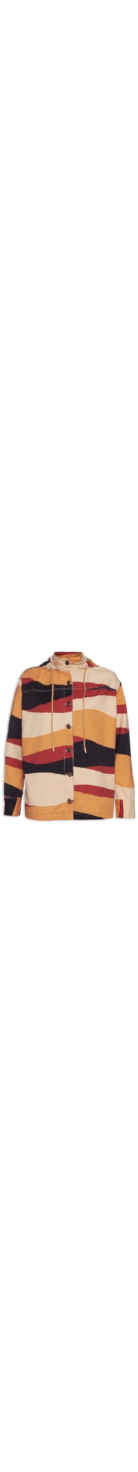 Jaqueta Feminina Alongada Botão Sarja Estampada, Cacay.