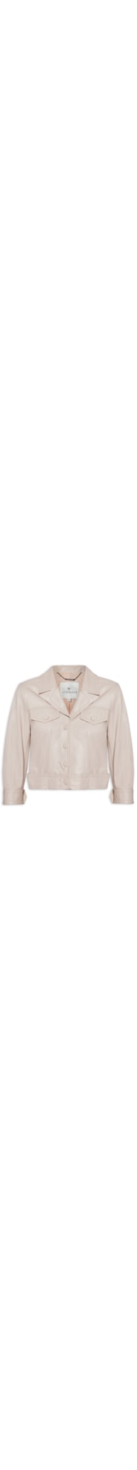 a jaqueta Bege é Confeccionada Em couro. A Peça Sola Ao Corpo, Possui Lapela, Ombros Estruturados Com Ombreiras, Mangas 7/8 Com Pregas Nos Punhos, Zíper Metálico E Detalhe Com Botão De Pressão Aplicado Nos Punhos, Recortes Frontais, Bolsos Decorativos Frontais Com Botão De Pressão Aplicado, Tiras Laterais Sobrepostas Com Abotoamento Posterior Por Pressão, Pregas Posteriores, Comprimento Cropped*, Forro E Fechamento Frontal Por Pressão.