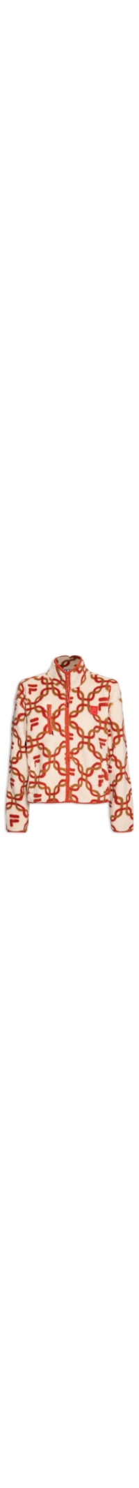 A Jaqueta Vermelha é Confeccionada Em sherpa Sem Elasticidade. A Peça Solta Ao Corpo Possui Gola Alta, Mangas Longas, Ombros Estendidos, Logo Da Marca Aplicado Na Altura Do Busto Em Borracha, Bolsos Frontais Embutidos Com Fechamento Por Zíper Com Puxador Na Altura Do Busto, Estampa Abstrata Em Cores Contrastantes E Fechamento Frontal Por Zíper Com Puxador.
