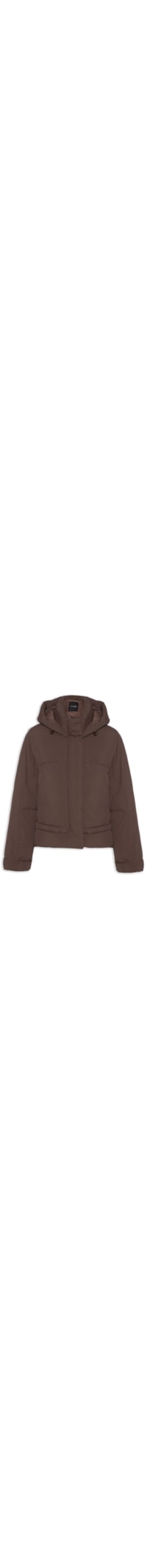 A jaqueta marorm é confeccionada em nylon sem elasticidade. A peça solta ao corpo de modelo puffer* possui gola alta, ombros estendidos, mangas longas com forro de elástico embutido nos punhos, capuz com elástico embutido para regulagem, bolsos frontais embutidos com fechamento em zíper, forro, barra mullet** arredondada e fechamento frontal em zíper com vista sobreposta.