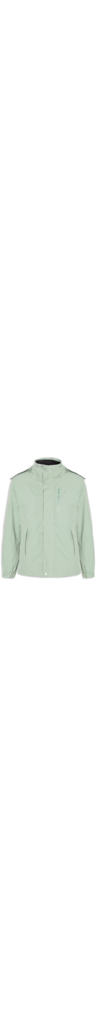 A jaqueta verde é confeccionada em tecido encorpado sem elasticidade. A peça de solta ao corpo possui gola alta com capuz removível embutido, mangas longas com ajuste nos punhos e tira aplicada com velcro para ajustes, recortes frontais e posteriores, bolsos frontais com fechamento por zíper, bolso frontal na altura do tórax com fechamento por zíper e fechamento frontal por zíper e botões de pressão. Acompanha segunda jaqueta preta de modelo puffer* com gola alta, bolsos laterais com fechamento por zíper invisível e fechamento frontal por zíper.