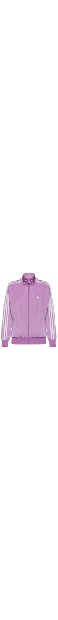 A jaqueta lilás é confeccionada em malha sem elasticidade. A peça solta ao corpo possui gola alta, mangas longas com ajuste nos punhos, ombros estendidos, listras em viés com cor contrastante na altura dos ombros e nas mangas, bolsos frontais embutidos com fechamento por zíper, nome e logo da marca bordados em cor contrastante na altura do busto e fechamento frontal por zíper.