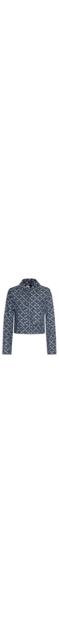 A jaqueta azul é confeccionada em jacquard.. A peça apossui colarinho simples, mangas longas, bolsos frontais com fechamento por aba, shape solto, caimento reto, logo da marca na parte posterior próximo ao colarinho e fechamento frontal por zíper.