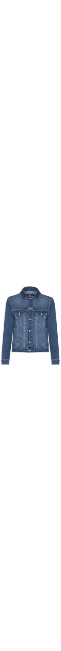 a Jaqueta Azul é Confeccionada Em sarja Com Lavagem Em Jeans Com Alta Elasticidade. A Peça Solta Ao Corpo Possui Colarinho Simples, Mangas Longas Com Abotoamento Nos Punhos, Recortes Posteriores E Frontais, Tag Da Marca Aplicada Em Metal Na Parte Posterior, Bolsos Frontais Com Fechamento Por Aba E Botão, Botões Com Detalhe De Cristal, Efeito Estonado, Bolsos Frontais Embutidos E Fechamento Frontal Por Botões.