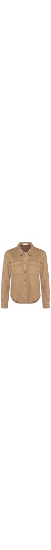A jaqueta marrom é confeccionada em suede sem elasticidade. A peça solta ao corpo possui colarinho clássico, mangas longas com fendas e botões metálicos aplicados nos punhos, recorte posterior, ombros estendidos, recorte frontal, bolsos frontais com recorte e aviamentos metálicos, barra arredondada e fechamento frontal por botões.