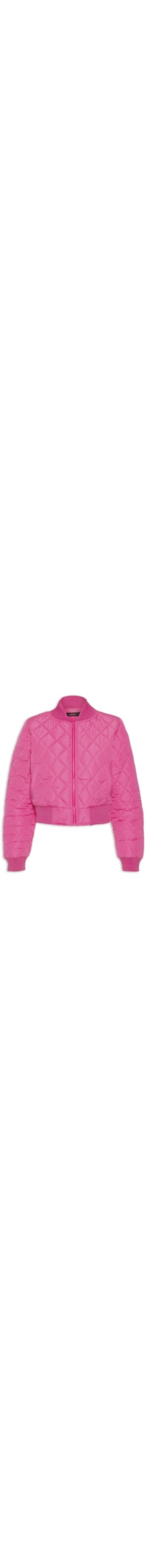 A jaqueta rosa é confeccionada em tactel com superfície em matelassê. A peça de modelo bomber* possui decote redondo, mangas longas, bolsos frontais,tag emborrachada da marca na parte frontal, forro em cor contrastante, comprimento cropped**, shape solto, caimento reto, acabamento pespontado e fechamento frontal por zíper.