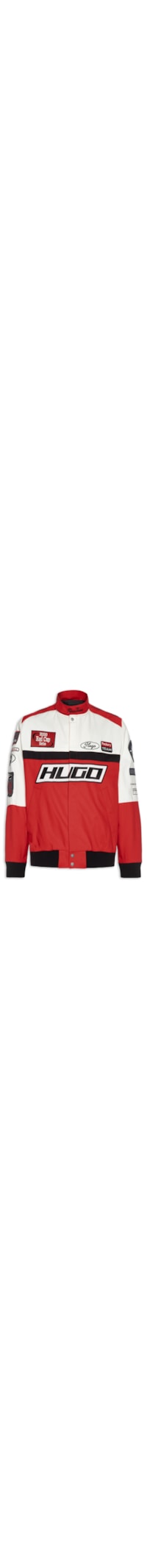 Aposte em um visual com destaque e conforto garantidos com esta jaqueta Hugo combinada com uma camiseta branca, calça preta e um tênis para finalizar.